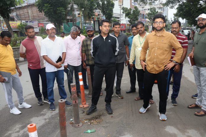 కాకతీయ, ఖమ్మం ప్రతినిధి : ఖమ్మం నగరాన్ని మెరుగైన పారిశుధ్య సేవలతో ఆదర్శంగా తీర్చిదిద్దాలని జిల్లా కలెక్టర్ అనుదీప్ దురిశెట్టి అన్నారు. సోమవారం తెల్లవారుజామున జిల్లా కలెక్టర్ మున్సిపల్ కార్పొరేషన్ కమిషనర్ అభిషేక్ అగస్త్యతో కలిసి నగరంలో పర్యటించి, ప్రధాన రహదారులు, పార్కులు, మయూరి సెంటర్, వైరారోడ్, ప్రభుత్వ హాస్పిటల్, ఇల్లందు క్రాస్ రోడ్ సెంటర్లలో పారిశుధ్య పనులను తనిఖీ చేశారు. చెత్త సేకరించే కార్మికులు, జవాన్లతో కలెక్డర్ ముచ్చటించారు. సైడ్ డ్రెయిన్లు శుభ్రపర్చాలని, రోడ్డు లో పేరుకుపోయిన మట్టి ఎత్తివేయాలని, డివైడర్స్ లోని మొక్కలను కాపాడాలని సూచించారు. బైపాస్ రోడ్, ఎన్టీఆర్ సర్కిల్, శ్రీశ్రీ రోడ్లలో మరమత్ములు చేసిన గుంతల నాణ్యతను కలెక్టర్ పరిశీలించారు.