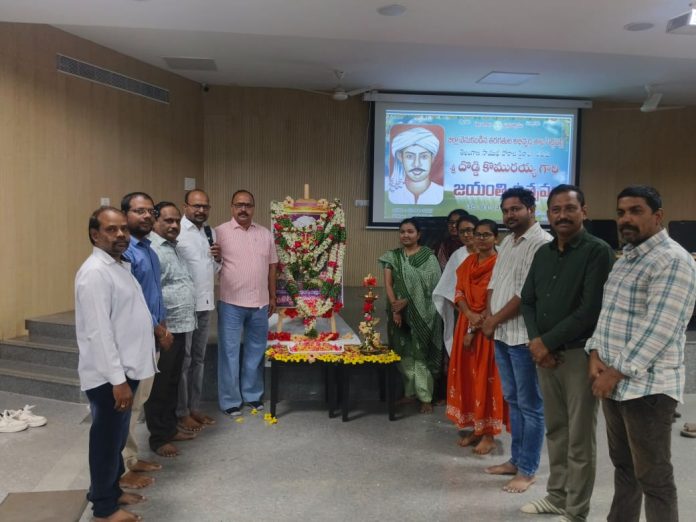 కాకతీయ, పెద్దపల్లి : తెలంగాణ సాయుధ పోరాట తొలి అమరుడు దొడ్డి కొమురయ్య పోరాట స్ఫూర్తి నేటి తరానికి మార్గదర్శకమని బీసీ సంక్షేమ అధికారి రంగారెడ్డి అన్నారు. శుక్రవారం ఈ విషయాన్ని తెలిపారు. పెద్దపల్లి సమీకృత జిల్లా కలెక్టరేట్ సమావేశ మందిరంలో నిర్వహించిన దొడ్డి కొమురయ్య 99వ జయంతి కార్యక్రమంలో ఆయన పాల్గొన్నారు. ఈ సందర్భంగా బీసీ సంక్షేమ అధికారి రంగారెడ్డి మాట్లాడుతూ నిరంకుశ పాలనకు వ్యతిరేకంగా పోరాడిన తొలి త్యాగధనుడిగా కొమురయ్య చరిత్రలో చిరస్థాయిగా నిలిచారని తెలిపారు. స్వేచ్ఛ, ఆత్మగౌరవం కోసం ప్రాణాలు అర్పించిన ఆయన పోరాటం సమాజానికి ఆదర్శమని చెప్పారు. మహనీయులను ఒక కులం లేదా వర్గానికి పరిమితం చేయకుండా వారి ఆశయాలను అందరూ ఆచరించాల్సిన అవసరం ఉందన్నారు. యువత కొమురయ్య స్ఫూర్తిని ఆదర్శంగా తీసుకుని సమాజ అభివృద్ధికి కృషి చేయాలని పిలుపునిచ్చారు. కార్యక్రమంలో సంఘ ప్రతినిధులు, జిల్లా అధికారులు, కలెక్టరేట్ సిబ్బంది పాల్గొన్నారు.