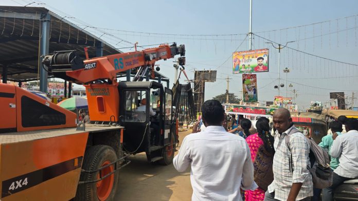 మహాజాతర సమయంలో భక్తులను క్రమబద్ధంగా దర్శనానికి అనుమతించేందుకు ఏర్పాటు చేస్తున్న క్యూలైన్ల నిర్మాణం ఇంకా కొనసాగుతుండటం ప్రధాన సమస్యగా మారింది. మేడారం ఆలయ పునర్నిర్మాణంలో భాగంగా మాస్టర్ ప్లాన్ అమలు చేసి కేవలం మూడు నెలల్లో ఆలయ ప్రాంగణాలను నిర్మించిన అధికారులు, అత్యంత కీలకమైన క్యూలైన్ పనులను మాత్రం నత్తనడకన కొనసాగించడం విడ్డూరంగా ఉందని భక్తులు విమర్శిస్తున్నారు. ఒకవైపు అమ్మవార్ల దర్శనానికి భక్తులు పెద్ద సంఖ్యలో తరలివస్తుండగా, మరోవైపు భారీ యంత్రాలతో క్యూలైన్ పనులు కొనసాగడం వల్ల రాకపోకలకు తీవ్ర అంతరాయం ఏర్పడుతోందని స్థానికులు పేర్కొంటున్నారు. దర్శనానికి వెళ్లే సమయంలో పనుల కారణంగా ప్రమాదాలు జరిగే అవకాశం ఉందని భక్తులు ఆందోళన వ్యక్తం చేస్తున్నారు.