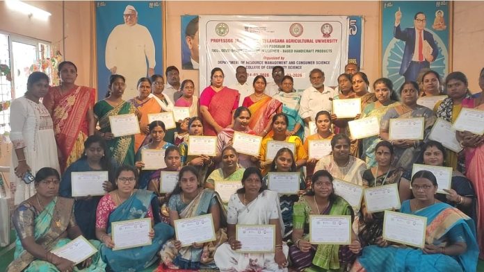 కాకతీయ, మేడ్చల్ మల్కాజ్గిరి : మల్కాజ్గిరి అంబేద్కర్ భవన్లో నిర్వహించిన 12 రోజుల లెదర్ హ్యాండిక్రాఫ్ట్ శిక్షణ కార్యక్రమం విజయవంతంగా ముగిసింది. మహిళల ఆర్థిక స్వావలంబనకు ఈ శిక్షణ దోహదపడింది. ప్రొఫెసర్ జయశంకర్ తెలంగాణ వ్యవసాయ విశ్వవిద్యాలయం కమ్యూనిటీ సైన్స్ కాలేజీ ఆధ్వర్యంలో కార్యక్రమం నిర్వహించారు. రిసోర్స్ మేనేజ్మెంట్ అండ్ కన్స్యూమర్ సైన్స్ విభాగం, టెక్నాలజీ విభాగం, తెలంగాణ స్టేట్ కౌన్సిల్ ఆఫ్ సైన్స్ అండ్ టెక్నాలజీ కలిసి శిక్షణ ఇచ్చాయి. సుమారు 40 మంది ఎస్సీ, ఎస్టీ మహిళలు పాల్గొన్నారు. బ్యాగులు, పర్సుల తయారీలో ప్రాయోగిక నైపుణ్యాలు అభ్యసించారు. ఈ సందర్భంగా అధికారులు మాట్లాడారు. శిక్షణతో స్వయం ఉపాధి అవకాశాలు పెరుగుతాయని తెలిపారు. మహిళలకు ఆదాయ వనరులు కల్పించడమే లక్ష్యమని పేర్కొన్నారు. ఈ కార్యక్రమం మహిళల ఆర్థిక అభివృద్ధికి కీలకంగా మారిందని తెలిపారు.