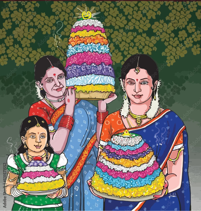 బతుకమ్మ అంటే – విగ్రహం కాదు, పూల సమాహారం.