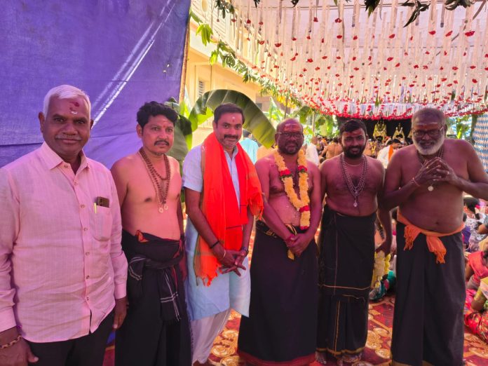 కాకతీయ, వరంగల్ ప్రతినిధి : ఖిలావరంగల్ పెట్రోల్ పంపుకు చెందిన మకరజ్యోతి కుటుంబం గురుస్వామి తోటకూరి రవీందర్ ఆధ్వర్యంలో ఘనంగా మహాపడి పూజోత్సవం నిర్వహించబడింది. ఈ పూజలో సుమారు 500 మంది మాలదీక్ష అయ్యప్ప భక్తులు పాల్గొని భక్తి భావనతో పూజల్లో పాల్గొన్నారు. గురుస్వామి ఆహ్వానం మేరకు వరంగల్ జిల్లా బీజేపీ అధ్యక్షులు గంటా రవికుమార్, బీజేపీ రాష్ట్ర కార్యవర్గ సభ్యులు ఎర్రబెల్లి ప్రదీప్ రావు, ప్రముఖ వ్యాపారవేత్త గజ్జెల రామకృష్ణ ముఖ్య అతిధులుగా హాజరయ్యారు. వారు వేదబ్రాహ్మణులచే తీర్థ ప్రసాదాలు స్వీకరించారు. అధిక సంఖ్యలో అయ్యప్ప భక్తులు ఖిలావరంగల్ పెట్రోల్ పంపు మరియు విద్యానగర్ కాలనీలో నామస్మరణతో, భక్తిశ్రద్ధలతో పూజల్లో పాల్గొన్నారు. మహాపడి పూజోత్సవం నగరంలో ఆధ్యాత్మిక వైభవానికి ప్రధాన ఆకర్షణగా నిలిచింది.