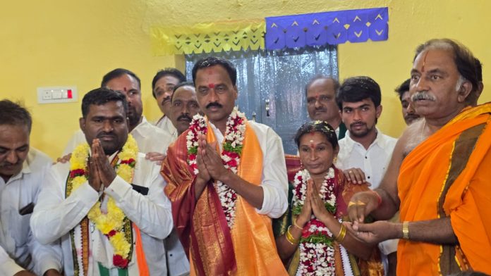 కాకతీయ, ములుగు ప్రతినిధి : ములుగు జిల్లాలో నూతనంగా ఏర్పాటైన జెడి మల్లంపల్లి మండల కేంద్రంలో గ్రామ పాలకవర్గ ప్రమాణ స్వీకార కార్యక్రమం అట్టహాసంగా జరిగింది. కాంగ్రెస్ పార్టీ మద్దతుతో సర్పంచ్గా ఎన్నికైన ల్యాద శ్యామ్రావు, ఉప సర్పంచ్గా కంచం సురేష్తో పాటు గ్రామ వార్డు సభ్యులు సోమవారం అధికారికంగా బాధ్యతలు స్వీకరించారు. మల్లంపల్లి ఎంపీడీవో ఎం.డి. రహీముద్దీన్ గ్రామపంచాయతీ కార్యాలయంలో సర్పంచ్, ఉప సర్పంచ్ మరియు నూతన వార్డు సభ్యులతో ప్రమాణ స్వీకారం చేయించారు. ఈ సందర్భంగా గ్రామ ప్రజలు పెద్ద సంఖ్యలో హాజరై నూతన పాలకవర్గాన్ని ఘనంగా అభినందించారు.