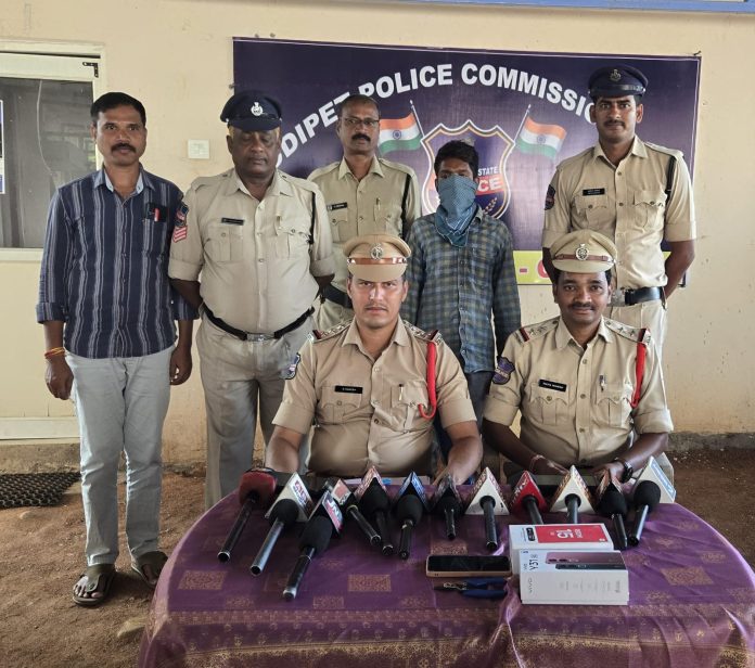 కాకతీయ, చేర్యాల: చేర్యాల పట్టణ కేంద్రంలోని గాంధీ కూడలి వద్ద ఉన్న భాస్కర్ మొబైల్ షాపులో గుర్తు తెలియని దుండగులు చోరీకి పాల్పడ్డ విషయం విధితమే. ఈ విషయం మేరకు పోలీసులకు బాధితుడు ఫిర్యాదు చేయగా కేసు నమోదు చేసుకుని దర్యాప్తు చేపట్టిన పోలీసులు 24 గంటల్లో దొంగతనానికి పాల్పడిన వ్యక్తిని అరెస్టు చేశారు. సీఐ రమేష్ నాయక్ తెలిపిన వివరాల ప్రకారం.సోమవారం గాంధీ కూడలి వద్ద భాస్కర్ మొబైల్ షాపులోకి చొరబడి రూ, 40,400 విలువచేసే మొబైల్ లను ఆంధ్రప్రదేశ్ రాష్ట్రంలోని అనంతపురం జిల్లా కదిరి నిజం కాలానికి చెందిన పోతుల శివ కుమార్ అనే వ్యక్తి షాప్ లోకి చొరబడి దొంగలించగా 24 గంటల్లో నిందితుడైన శివ కుమార్ ను కొమురవెల్లి పోలీస్ లు పెట్రోలింగ్ చేస్తుండగా కొమురవెల్లి బస్టాండు వద్ద అనుమానాస్పదంగా కనిపించిన శివ కుమార్ ను మందలించగా చేర్యాలలోని మొబైల్ షాపులో చోరీ చేసింది నేనే అని ఒప్పుకోవడంతో అతడిని అదుపులోకి తీసుకొని దొంగలించిన 3 సెల్ ఫోన్లు స్వాధీనం చేసుకుని కేసు నమోదు చేసి రిమాండ్ తరలించినట్లు సీఐ రమేష్ నాయక్ తెలిపారు.నిందితుడిని చాక చక్యంగా పట్టుకున్న పోలీస్ లను ప్రజలు అభినందించారు.
