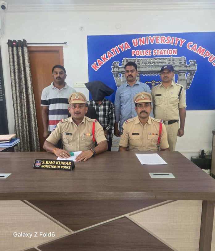 కాకతీయ, వరంగల్ బ్యూరో : హనుమకొండ నగరంలోని కేయూసీ పోలీస్స్టేషన్ పరిధిలో వరుస చోరీలకు పాల్పడుతున్న దొంగను శనివారం పోలీసులు పట్టుకున్నారు. నిందితుడి నుండి రూ.6 లక్షల విలువైన బంగారు, వెండి ఆభరణాలు, నగదు స్వాధీనం చేసుకున్నారు. కేయూసీ సీఐ ఎస్. రవి కుమార్ వివరాల ప్రకారం.. సెండే అరుణ్ కుమార్ ఉద్యోగాల కోసం సిద్ధమయ్యేందుకు 2024లో హనుమకొండకు వచ్చాడు. చదువుతో పాటు ఆన్లైన్ బెట్టింగ్లకు బానిసై అప్పులు చేసి, వాటిని తీర్చేందుకు రాత్రివేళల్లో ఇళ్లలో చోరీలకు పాల్పడ్డాడు. గోపాలపూర్, భీమారం ప్రాంతాల్లో రాత్రిపూట తాళాలు పగలగొట్టి బంగారం, వెండి ఆభరణాలు, నగదు దోచుకున్నాడు. ఇప్పటి వరకు సుమారు 10 దొంగతనం కేసుల్లో పాల్గొన్నట్టు విచారణలో వెల్లడైంది. పోలీసులు అతని వద్ద నుండి 40 గ్రాముల బంగారు ఆభరణాలు, 50 గ్రాముల వెండి ఆభరణాలు, రూ.56,400 నగదు, మొత్తం రూ.6 లక్షల విలువైన వస్తువులు స్వాధీనం చేసుకున్నారని సీఐ తెలిపారు. ఈ కేసును చేధించిన కేయూసీ ఎస్ఐలు పి. శ్రీకాంత్, కె. నవీస్ కుమార్, క్రైమ్ సిబ్బంది అహ్మద్ పాషా, రాజశేఖర్, జితేందర్ అలాగే సహకరించిన సీసీఎస్ వరంగల్ సిబ్బంది టి.మధు, బి.చందును సీఐ అభినందించారు.