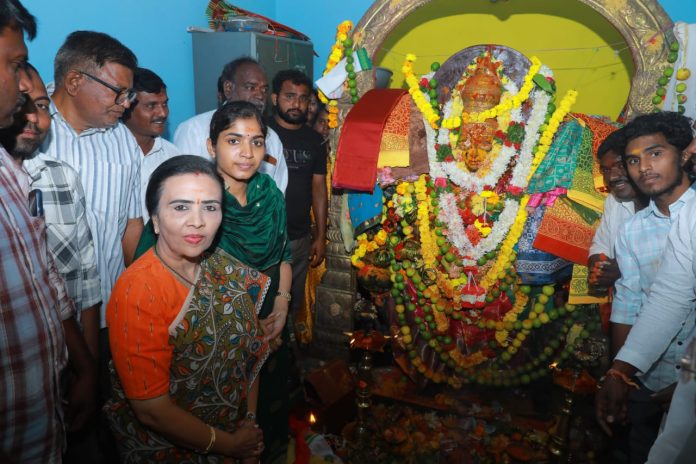 కాకతీయ, రాయపర్తి : దుర్గామాత అమ్మవారి అనుగ్రహం ప్రజలందరిపై ఎల్లవేళలా ఉండాలని ఎమ్మెల్యే యశ్విని రెడ్డి ఆకాంక్షించారు.టీపీసీసీ ఉపాధ్యక్షురాలు ఝాన్సీ రెడ్డితో కలిసి దుర్గామాతను దర్శించుకున్నారు. శుక్రవారం మండలంలోని కొండూరు గ్రామంలో అంగరంగ వైభవంగా నిర్వహించిన దుర్గమ్మ పండుగ వేడుకల్లో పాల్గొని అమ్మవారికి ప్రత్యేక పూజలు నిర్వహించారు.ఈ సందర్భంగా ఎమ్మెల్యే మాట్లాడుతూ ప్రజలంతా ఆయురారోగ్యాలతో సుభిక్షంగా ఉండాలని వేడుకున్నట్లు పేర్కొన్నారు.అమ్మవారి అనుగ్రహంతో నియోజకవర్గంలో అభివృద్ధి పనులను ముందుకు తీసుకువెళ్తానని తెలిపారు.కార్యక్రమంలో ప్రజా ప్రతినిధులుప్రజా ప్రతినిధులు, మహిళలు,యువత పెద్ద సంఖ్యలో పాల్గొన్నారు.