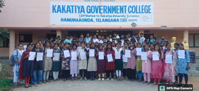 కాకతీయ, హనుమకొండ : కాకతీయ ప్రభుత్వ స్వయం ప్రతిపత్తి కళాశాలలో నిర్వహించిన మెగా జాబ్ డ్రైవ్ విజయవంతంగా ముగిసింది. టీఎస్కేసీ, కళాశాల ప్లేస్మెంట్ సెల్ ఆధ్వర్యంలో మ్యాజిక్ బస్ ఇండియా ఫౌండేషన్ సహకారంతో ఈ ప్రత్యేక నియామక కార్యక్రమం నిర్వహించారు. ఈ జాబ్ డ్రైవ్కు పలు ప్రముఖ సంస్థలు హాజరై విద్యార్థులను ఎంపిక చేయగా, మొత్తం 140 మంది అభ్యర్థులు ఉద్యోగాలకు ఎంపికయ్యారు. కార్యక్రమానికి మొత్తం 390 మంది విద్యార్థులు ఇంటర్వ్యూలకు హాజరుకావడం విశేషం. ఈ సందర్భంగా కళాశాల యాజమాన్యం, మ్యాజిక్ బస్ ఇండియా ఫౌండేషన్ మధ్య విద్యార్థుల ఉపాధి అవకాశాలను మెరుగుపరచే లక్ష్యంతో అవగాహన ఒప్పందం (MoU) కుదిరింది. భవిష్యత్తులో మరిన్ని ప్లేస్మెంట్ డ్రైవ్లు నిర్వహించేందుకు ఈ ఒప్పందం తోడ్పడనుంది. ఎంపికైన అభ్యర్థులకు కళాశాల ప్రిన్సిపాల్ ప్రొఫెసర్ జి. శ్రీనివాస్ ఆఫర్ లెటర్లను అందజేశారు. విద్యార్థులకు ఉపాధి అవకాశాలు కల్పించడంలో ఇలాంటి కార్యక్రమాలు ఎంతో కీలకమని ఆయన పేర్కొన్నారు. ఈ కార్యక్రమంలో ఉప ప్రిన్సిపాళ్లు, ప్లేస్మెంట్ సెల్ అధ్యాపకులు, మ్యాజిక్ బస్ ఇండియా ఫౌండేషన్ ప్రతినిధులు పాల్గొన్నారు.