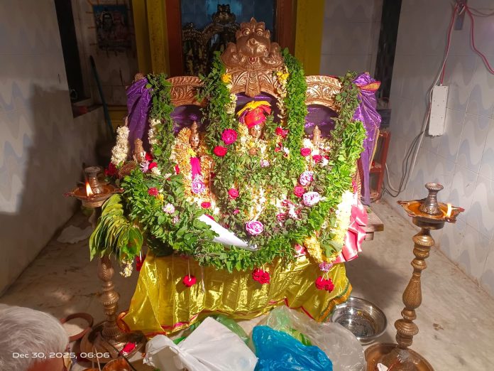 కాకతీయ, జూలూరుపాడు : ముక్కోటి (వైకుంఠ) ఏకాదశి మహోత్సవం సందర్భంగా మండలంలోని జూలూరుపాడు,పడమట నర్సాపురం,గుండెపూడి,పాపకొల్లు,వెంగన్నపాలెం,కాకర్ల,అనంతారం, కరివారిగూడెం తదితర గ్రామాల్లో వెచ్చిసివున్న దేవాలయాల్లో రామనామ,హరినామ స్మరణతో ముక్కోటి ఏకాదశి వేడుకలను అంగ రంగ వైభవంగా జరుపుకొన్న భక్తులు.పడమట నర్సాపురం గ్రామంలో వేచ్చేసివున్న శ్రీ సీతారామచంద్రస్వామి ఆలయంలో మంగళం వారం నాడు శ్రీ సీతారామచంద్ర స్వామి దేవతామూర్తులను తెల్లవారు జామున గంటల 5.30 నిమిషాల నుండి భక్తులకు ఉత్తరద్వార దర్శనాన్ని కల్పించారు అలయ అర్చకుడు పురాణం శ్రీనివాసశర్మ ఆద్వర్యంలో ప్రత్యేకమైన పుజ్యదికార్యక్రమాలు నిర్వహించి ముక్కోటి ఏకాదశి యొక్క విశిష్టతను భక్తులకు తెలియపరిచి, పడమట నర్సాపురం ఆలయ కమిటీ అధ్యక్షుడు లేళ్ల అప్పిరెడ్డి మరియు కమిటీ సభ్యులు ఆధ్వర్యంలో భక్తులకు తీర్ధప్రసాదాలు అందించారు. వివిధ ప్రాంతాల నుండి అధిక సంఖ్యలో భక్తులు పడమట నర్సాపురంలోని శ్రీ సీతారామచంద్ర స్వామి ఉత్తరద్వార దర్శనం చేసుకొన్నారు.ఈ కార్యక్రమంలో గ్రామ సర్పంచ్ సంఘం లక్ష్మీ కుమారి, కాజా రమేష్,ఆళ్ల శ్రీనివాసరావు,దొప్పలపుడి సాంబశివరావు, లేళ్ల గోపాల్ రెడ్డి, బాధావత్ హరీష్, సంఘం నాగరాజు,బిక్షపతి,మల్లిఖార్జున రావు, మరియు భక్తులు పాల్గొన్నారు.