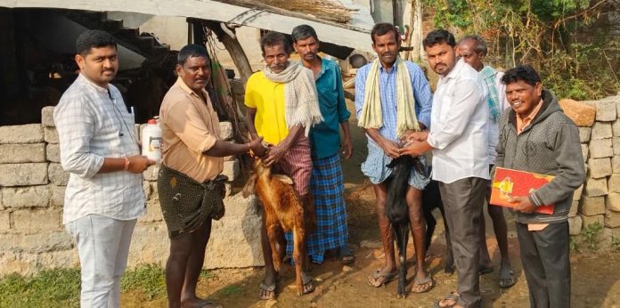 కాకతీయ, నెల్లికుదురు : ఆరోగ్యవంతమైన గొర్రెలు, మేకల పెంపకానికి నట్టల నివారణ మందు అత్యంత అవసరమని నెల్లికుదురు మండలం శ్రీరామగిరి గ్రామ సర్పంచి మాదరి ప్రశాంత్ సూచించారు. పశుసంవర్ధక శాఖ ఆధ్వర్యంలో ప్రభుత్వం ఉచితంగా సరఫరా చేస్తున్న నట్టల మందును శనివారం గ్రామంలో గొర్రెలు, మేకలకు వేసి కార్యక్రమాన్ని ప్రారంభించారు. ఈ సందర్భంగా ఆయన మాట్లాడుతూ నట్టల మందు వినియోగంతో పశువుల్లో ఉండే పురుగులు నివారించబడతాయని, తద్వారా వాటి ఆరోగ్యం మెరుగుపడటంతో పాటు దిగుబడులు కూడా పెరుగుతాయని తెలిపారు. ప్రభుత్వం అందిస్తున్న ఉచిత సేవలను పెంపకదారులు పూర్తిగా ఉపయోగించుకోవాలని కోరారు. ఈ కార్యక్రమంలో వెటర్నరీ సిబ్బంది రాజేష్, మైసయ్య, గ్రామ యాదవ సంఘం నాయకులు పోతారాజు యాకయ్య, దేశాబోయిన శ్రీను, చిన్నల లక్మయ్య, పోతారాజు శ్రీనివాస్, పోలుదాసు ప్రసాద్తో పాటు గ్రామ ప్రజలు పాల్గొన్నారు.