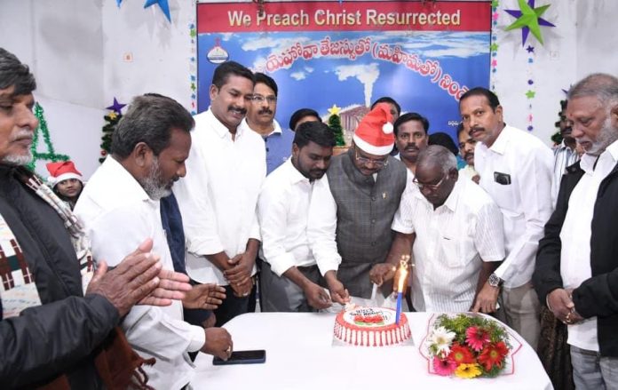 కాకతీయ, రామకృష్ణాపూర్ : ప్రతి వ్యక్తి భక్తి,భావంతో సన్మార్గంలో నడవాలని చెన్నూరు ఎమ్మెల్యే,కార్మిక,ఉపాధి కల్పన శాఖ మంత్రి గడ్డం వివేక్ వెంకటస్వామి అన్నారు. గురువారం క్రిస్మస్ వేడుకల్లో భాగంగా పట్టణంలోని సీఎస్ఐ,సీయోను,పెంతేకాస్తు చర్చ్ లలో మంత్రి వివేక్ పాల్గొని ప్రత్యేక ప్రార్థనలు చేశారు. అనంతరం వివిధ చర్చ్ పాస్టర్లతో కలిసి కేక్ కట్ చేసి క్రిస్మస్,నూతన ఆంగ్ల సంవత్సర శుభాకాంక్షలు తెలిపారు. మంత్రి వెంట జిల్లా డీసీసీ అధ్యక్షుడు పిన్నింటి రఘునాథ రెడ్డి,పట్టణ అధ్యక్షుడు పల్లె రాజు,గాండ్ల సమ్మయ్య,అబ్దుల్ అజీజ్,యాకుబ్ అలీ,కనకరాజు,కళ్యాణ్,సతీష్,కుమార్ పాల్గొన్నారు.