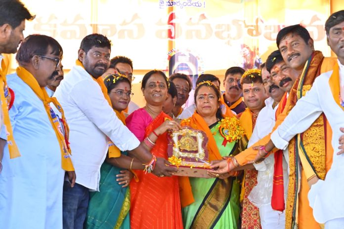 కాకతీయ, వరంగల్ సిటీ : వరంగల్ జిల్లా ఖిలా వరంగల్ చింతల్ గ్రౌండ్ లో ఆదివారం పద్మశాలి కార్తీకమాస వనభోజన మహోత్సవాలు నిర్వహించారు. ఈ కార్యక్రమంలో అటవీ, పర్యావరణ, దేవాదాయ ధర్మాదాయ శాఖా మంత్రి కొండా సురేఖ, నగర మేయర్ గుండు సుధారాణి హాజరయ్యారు. ఈ సందర్భంగా మంత్రి సురేఖ కు వేదపండితులు పూర్ణకుంభంతో స్వాగతం పలికారు. కార్యక్రమ నిర్వాహకులు, ప్రజలు మంత్రిని సాదరంగా ఆహ్వానించారు. ప్రత్యేక పూజా కార్యక్రమాల్లో పాల్గొన్న అనంతరం మంత్రి సురేఖ ను నిర్వాహకులు శాలువాతో సన్మానించి, జ్ఞాపికను అందించారు. ఈ సందర్భంగా మంత్రి సురేఖ మాట్లాడుతూ పూర్వీకులు మన ప్రయోజనాలను కోరి అనేక ఆచారాలను, సంప్రదాయాలను ఏర్పరిచారని, సామూహిక జీవన విధానాన్ని అలవాటు చేసే వన భోజన కార్యక్రమం అలాంటిదేనని అన్నారు. వన భోజనాలకు వచ్చిన వారికి పేరుపేరునా మంత్రి సురేఖ శుభాకాంక్షలు తెలిపారు. ఆ రోజుల్లో ప్రజలు ఆధ్యాత్మిక, సామాజిక ప్రయోజనాలను ఆశించి వన భోజనాలు జరుపుకునేవారని అన్నారు. కానీ కాల క్రమంలో కులాల వారీగా వన భోజనాలు జరుపుకునే ఆచారం వచ్చిందని తెలిపారు. ఒకరి కోసం అందరూ, అందరి కోసం ఒకరూ సహకరించుకుంటూ పోతే ప్రజల మధ్య సహృద్భావ సంబంధాలు పెంపొంది వసుదైక కుటుంబంగా వర్ధిల్లుతాతమనీ, సత్సంబంధాలు పెరిగి ఉన్నతంగా ఎదగడానికి తోడ్పడుతుందని మంత్రి సురేఖ తెలిపారు. వన భోజనాలతో ప్రజల మధ్య సాన్నిహిత్యం పెరిగి, వైవాహిక సంబంధాలతో కుటుంబ బంధాలు మరింత బలపడతాయని మంత్రి అన్నారు. వన భోజనాల తర్వాత కార్తీక దీపోత్సవాన్ని నిర్వహించుకోవడం అభినందనీయమని మంత్రి సురేఖ పేర్కొన్నారు. తనను ఈ కార్యక్రమానికి ఆహ్వానించిన నిర్వాహకులకు ధన్యవాదాలు తెలిపారు.