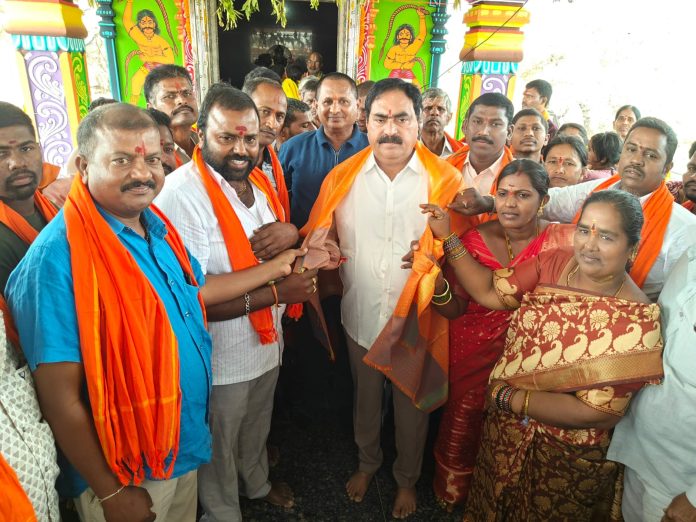 కాకతీయ, రాయపర్తి: పెద్దమ్మ తల్లి ఆశీస్సులతో ప్రజలు సుఖసంతోషాలతో ఉండాలని మాజీ మంత్రి ఎర్రబెల్లి దయాకర్ రావు అన్నారు. గ్రామంలో పాడిపంటలు సమృద్ధిగా పండాలని కోరుకున్నారు. మండలంలోని కాట్రపల్లి గ్రామంలో గురువారం పెద్దమ్మ తల్లి ఉత్సవాలు వైభవంగా నిర్వహించారు. ఈ ఉత్సవాలకు ఎస్ఆర్ఆర్ ఫౌండేషన్ అధినేత పరుపాటి శ్రీనివాస్ రెడ్డితో కలిసి మాజీ మంత్రి ఎర్రబెల్లి దయాకర్ రావు హాజరయ్యారు. అర్చకులు, గ్రామ కమిటీ సభ్యులు పూర్ణకుంభంతో ఘనస్వాగతం పలికారు.