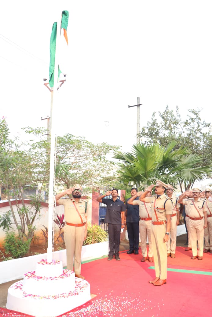 కాకతీయ , కొత్తగూడెం రూరల్ : 77వ భారత గణతంత్ర దినోత్సవం సందర్భంగా జిల్లా ఎస్పీ కార్యాలయంలో సోమవారం వేడుకలను ఘనంగా నిర్వహించారు. ఈ సందర్భంగా జిల్లా ఎస్పీ రోహిత్ రాజు జాతీయ పతాకాన్ని ఆవిష్కరించి గణతంత్ర వేడుకలకు శ్రీకారం చుట్టారు. జాతీయ జెండా ఆవిష్కరణ అనంతరం జిల్లా ప్రజలకు, పోలీసు అధికారులు, సిబ్బందికి ఎస్పీ 77వ గణతంత్ర దినోత్సవ శుభాకాంక్షలు తెలిపారు. ఈ సందర్భంగా ఆయన ప్రసంగిస్తూ రాజ్యాంగ స్ఫూర్తికి అనుగుణంగా ప్రతి ఒక్కరూ నడుచుకోవాలని ఆకాంక్షించారు. స్వేచ్ఛ, స్వాతంత్య్రాల వెనుక అనేక మంది పోరాటయోధుల త్యాగం దాగి ఉందని ఎస్పీ గుర్తు చేశారు. ఆ త్యాగాలకు గౌరవంగా మన వంతు బాధ్యతగా దేశ సేవకు కట్టుబడి ఉండాలని సూచించారు. ప్రజాస్వామ్య విలువలను కాపాడడంలో పోలీస్ వ్యవస్థకు కీలక పాత్ర ఉందని పేర్కొన్నారు.