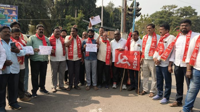 కాకతీయ, కొత్తగూడెం రూరల్ : ఉపాధి హామీ పథకాన్ని రద్దు చేసే కేంద్ర ప్రభుత్వ విధానాలను తిప్పికొట్టాలని వామపక్షాల నాయకులు పిలుపునిచ్చారు. మహాత్మా గాంధీ జాతీయ గ్రామీణ ఉపాధి హామీ పథకాన్ని రద్దు చేస్తూ తీసుకొచ్చిన విబిజి రాంజీ బిల్లును ఉపసంహరించుకోవాలని డిమాండ్ చేస్తూ మంగళవారం వామపక్షాల ఆధ్వర్యంలో జీవో కాపీలను దగ్ధం చేసి నిరసన తెలిపారు. ఈ పథకం గ్రామీణ పేదలకు పని హక్కును కల్పించిందని, వలసలను అడ్డుకుందని నేతలు పేర్కొన్నారు. గాంధీ పేరును తొలగించే కుట్రలో భాగంగానే పథకాన్ని రద్దు చేస్తున్నారని ఆరోపించారు. ఉపాధి హామీని కాపాడుకునేందుకు భవిష్యత్‌లో ఉద్యమాలు కొనసాగిస్తామని ప్రకటించారు.
