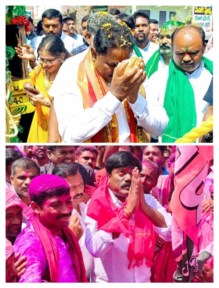 వివిధ గ్రామాల నుండి గిర్నిబావికి వచ్చిన కాంగ్రెస్ ప్రభ బండ్లను నర్సంపేట ఎమ్మెల్యే దొంతి మాధవరెడ్డి టెంకాయలు కొట్టి ప్రారంభించగా… బీఆర్ఎస్ ప్రభలను నర్సంపేట మాజీ ఎమ్మెల్యే పెద్ది సుదర్శన్ రెడ్డి ప్రారంభించారు. వారి వెంట కాంగ్రెస్ నాయకులు మార్కెట్ కమిటీ చైర్మన్ పాలాయి శ్రీనివాస్, బ్లాక్ కాంగ్రెస్ అధ్యక్షులు తోకల శ్రీనివాసరెడ్డి, మండల పార్టీ అధ్యక్షులు చుక్క రమేష్, వర్కింగ్ ప్రెసిడెంట్ చెన్నూరి కిరణ్ రెడ్డి, ఓలిగే నర్సింగ రావు, నాయకులు బండారి ప్రకాష్, డ్యాగం శివాజీ, బీఆర్ఎస్ నాయకులు మాజీ జడ్పీ వైస్ చైర్మన్ ఆకుల శ్రీనివాస్, నియోజకవర్గ యూత్ కన్వీనర్ శానబోయిన రాజుకుమార్, మండల పార్టీ అధ్యక్షులు సుకినె రాజేశ్వర్ రావు, పొన్నం మొగిలి, శెంకెశి కమలాకర్, పిండి కుమారస్వామి, సోలెంకి లింగయ్య, కంచరకుంట్ల శ్రీనివాస్ రెడ్డి పాల్గొన్నారు.