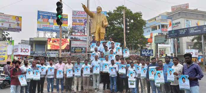 కాకతీయ, ఖమ్మం : ఎస్సీ వర్గీకరణకు అనుకూలంగా సుప్రీంకోర్టు తీర్పు వచ్చిన వెంటనే వర్గీకరణ చట్టాన్ని అమలు చేసిన ముఖ్యమంత్రి అనుముల రేవంత్ రెడ్డికి కృతజ్ఞతగా నిర్వహించనున్న సన్మానసభ పోస్టర్ను ఖమ్మం జడ్పీ సెంటర్లోని అంబేద్కర్ విగ్రహం వద్ద ఆవిష్కరించారు. తెలంగాణ రాష్ట్రంలోని మాదిగ ఉద్యోగుల ఆధ్వర్యంలో మార్చి 6న హైదరాబాద్ శిల్పకళా వేదికలో సన్మానసభ నిర్వహించనున్నారు. ఈ సభను విజయవంతం చేయాలని ఉద్యోగులు పిలుపునిచ్చారు. ఈ సందర్భంగా మాట్లాడిన నాయకులు ఎస్సీ వర్గీకరణ చట్ట అమలు సామాజిక న్యాయ దిశగా కీలక అడుగని పేర్కొన్నారు. వర్గీకరణ కోసం దశాబ్దాలుగా సాగిన పోరాటానికి ఇది ఫలితమని తెలిపారు. పోస్టర్ ఆవిష్కరణ కార్యక్రమంలో డాక్టర్ చిర్ర బాబురావు, కిరణ్ చక్రవర్తి, వి చిన్నబాబురావు, చేకూరి రమేష్, సగ్గుర్తి రామారావు, పొనుగోటి రవి, పేరెల్లి శ్రీను తదితరులు పాల్గొన్నారు.