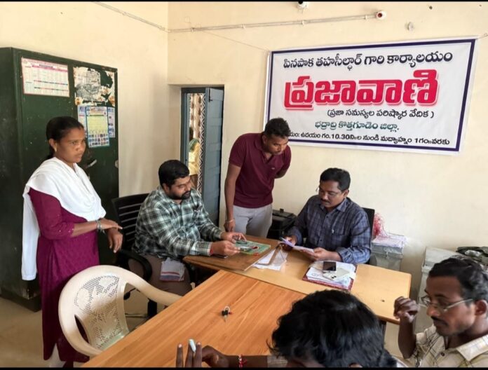 కాకతీయ, పినపాక: పినపాక తహశీల్దార్ కార్యాలయంలో మండలంలోని ప్రజా సమస్యలపై వినతులు తెలుసుకొని వాటి పరిష్కారానికై సోమవారం నాడు తహశీల్దార్ గొంది గోపాలకృష్ణ ప్రజావాణి కార్యక్రమాన్ని నిర్వహించారు. ఈ కార్యక్రమానికి మండలంలోని 71 గ్రామాలనుండి 6 అర్జీలు మాత్రమే రావడం విశేషం. వీటిలో ఇందిరమ్మ ఇళ్ళు, గృహజ్యోతి, పారిశుధ్య పనులు,పాఠశాల ప్రహరీ లకు సంబంధించిన వినతులు అందినట్లు తహశీల్దార్ గోపాలకృష్ణ తెలిపారు.