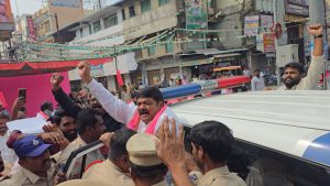 నిరసన ఉధృతం కావడంతో వరంగల్ చౌరస్తాలో భారీగా ట్రాఫిక్ నిలిచిపోయింది. ఆందోళనకారులను పోలీసులు అడ్డుకోవడంతో తోపులాట చోటుచేసుకుని ఉద్రిక్త పరిస్థితులు నెలకొన్నాయి. ఈ క్రమంలో పోలీసులు నన్నపునేని నరేందర్తో పాటు పలువురు ముఖ్య బీఆర్ఎస్ నాయకులు, కార్యకర్తలను బలవంతంగా అదుపులోకి తీసుకుని వాహనాల్లో ఎక్కించి ఇంతెజార్ గంజ్ పోలీస్ స్టేషన్కు తరలించారు.