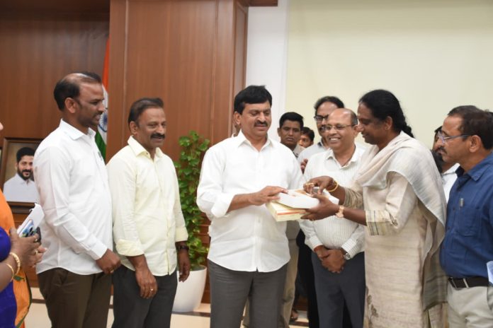 కాకతీయ, తెలంగాణ బ్యూరో : ముఖ్యమంత్రి రేవంత్ రెడ్డి ఆలోచనలకు అనుగుణంగా రాష్ట్రంలో భూ సమస్యల పరిష్కారం కోసం రెవెన్యూ వ్యవస్ధలో విప్లవాత్మక సంస్కరణలను చేపట్టామని రాష్ట్ర రెవెన్యూ, గృహ నిర్మాణ, సమాచార పౌర సంబంధాల శాఖ మంత్రి పొంగులేటి శ్రీనివాసరెడ్డి అన్నారు. బుధవారం సచివాలయంలో డిప్యూటీ కలెక్టర్ల నుంచి స్పెషల్ గ్రేడ్ డిప్యూటీ కలెక్టర్లుగా పదోన్నతి పొందిన 13 మంది అధికారులు మంత్రి పొంగులేటిని కలిసి కృతజ్ఞతలు తెలిపారు. ఈ సందర్భంగా ఆయన మాట్లాడుతూ తెలంగాణ ప్రజల ఆశలు , ఆకాంక్షలకు అనుగుణంగా తమ ప్రభుత్వం చేపట్టిన సంస్కరణలు క్షేత్రస్ధాయిలో పకడ్బందీగా అమలు చేయాలని, అప్పుడే ప్రభుత్వ లక్ష్యం నెరవేరుతుందని అన్నారు. సాదాబైనామాల దరఖాస్తుల పరిష్కారానికి భూభారతి చట్టంలో స్పష్టమైన నిబంధనలను రూపొందించడం జరిగిందని దీనికి అనుగుణంగా సాదాబైనామా దరఖాస్తులను వీలైనంత త్వరగా పరిష్కరించాలని సూచించారు.