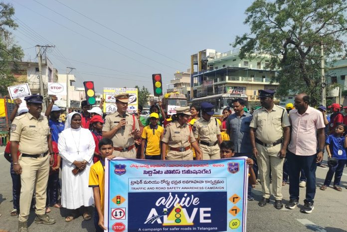 కాకతీయ, చేర్యాల: రోడ్డు ప్రమాదాలు నివారణ చర్యల్లో భాగంగా రాష్ట్ర వ్యాప్తంగా అరైవ్-అలైవ్ కార్యక్రమాలు నిర్వహిస్తున్న విషయం విధితమే ఈ మేరకు చేర్యాల పోలీస్ వారి ఆధ్వర్యంలో బుధవారం పాఠశాల విద్యార్థులతో పోలీస్ స్టేషన్ ఎదురుగ జాతీయ రహదారిపై రోడ్డు భద్రతపై అవగాహన కల్పిస్తూ, ప్రమాదాల సమయంలో బాధ్యతగా వ్యవహరించి క్షతగాత్రులను ఎలా కాపాడాలి వాహనాలపై వెళ్లేటప్పుడు ఎలాంటి చర్యలు తీసుకోవాలని ప్రదర్శన ద్వారా సూచించారు. ఈ సందర్భంగా సిఐ బానోతు రమేష్ నాయక్ మాట్లాడుతూ. మద్యం సేవించి వాహనం నడపడం, రాంగ్సైడ్ డ్రైవింగ్, సిగ్నల్ జంపింగ్ వంటి నిర్లక్ష్యపు చర్యలే ఈ ప్రమాదాలకు ప్రధాన కారణాలని పేర్కొన్నారు. ఏ పరిస్థితుల్లోనైనా పోలీసులు ప్రజల కోసం అంకిత భావంతో పనిచేస్తున్నారని గుర్తుచేశారు.అర్రివ్ అలైవ్ కార్యక్రమాన్ని ప్రతి ఇంటికి, ప్రతి వ్యక్తికి చేరవేసి ప్రమాదరహిత మండలంగా నిర్మించేందుకు పోలీసులు కట్టుబడి ఉన్నారని స్పష్టంచేశారు. ఈ కార్యక్రమం ద్వారా విద్యార్థుల్లో, యువతలో రోడ్డు భద్రతపై అవగాహన పెంపొందించడమే కాకుండా, ట్రాఫిక్ నియమాలను పాటించాల్సిన అవసరాన్ని కూడా స్పష్టంగా తెలియజేశారు.మొబైల్ ఫోన్లను రక్షించేందుకు పౌచ్లు, స్క్రీన్ గార్డులు ఉపయోగిస్తున్నప్పటికీ, తమ ప్రాణ రక్షణకు అవసరమైన హెల్మెట్, సీట్ బెల్ట్లను నిర్లక్ష్యం చేస్తున్నారని అన్నారు. ముఖ్యంగా రోడ్డు ప్రమాదాల్లో మరణాలు హెల్మెట్ ధరించకపోవడం వల్ల ఎక్కువగా జరుగుతున్నాయని వివరించారు. అందరూ ట్రాఫిక్ నియమాలు కచ్చితంగా పాటిస్తూ, తమతో పాటు ఇతరుల ప్రాణాలను పిలుపునిచ్చారు.ఈ కార్యక్రమంలో ఎస్ఐ జీ. అపూర్వ రెడ్డి, పోలీస్ సిబ్బంది తో పాటు ప్రయాణికులు, వాహనాదారులు తదితరులు పాల్గొన్నారు.
