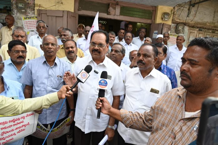 అడ్డుకున్న యూనియన్ నేతలు, విశ్రాంత ఉద్యోగులు