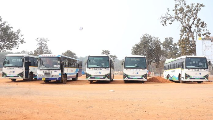 కాకతీయ, ములుగు ప్రతినిధి : తెలంగాణ కుంభమేళాగా పేరుగాంచిన మేడారం సమ్మక్క–సారలమ్మ మహా జాతర–2026కు తెలంగాణ రాష్ట్ర రోడ్డు రవాణా సంస్థ విస్తృత స్థాయిలో ఏర్పాట్లు చేస్తోంది. జనవరి 25 నుంచి ఫిబ్రవరి 1 వరకు మేడారం జాతరకు ప్రత్యేక బస్సులు నడపనున్నట్లు టీఎస్‌ఆర్‌టీసీ అధికారులు తెలిపారు. మహిళలకు మహాలక్ష్మి పథకం కింద ఉచిత ప్రయాణ సౌకర్యం కొనసాగుతుందని, ఈ వెసులుబాటుతో ఈసారి జాతరకు మహిళా భక్తుల సంఖ్య గణనీయంగా పెరిగే అవకాశం ఉందని పేర్కొన్నారు. 2026 మేడారం జాతరకు సుమారు 20 లక్షల మంది భక్తులను తరలించేందుకు టీఎస్‌ఆర్‌టీసీ సమగ్ర ప్రణాళిక రూపొందించింది. హైదరాబాద్‌తో పాటు రాష్ట్రంలోని వివిధ జిల్లాల నుంచి దాదాపు 4,000 ప్రత్యేక బస్సులను జాతరకు కేటాయించారు. భక్తుల రద్దీని బట్టి అవసరమైతే బస్సుల సంఖ్యను మరింత పెంచే అవకాశం ఉందని అధికారులు తెలిపారు. భక్తుల సౌకర్యార్థం మేడారం పరిసర ప్రాంతాల్లో తాత్కాలిక బస్ స్టేషన్లు, క్యూలైన్లు, వేచి ఉండే షెడ్లు, విస్తృత పార్కింగ్ సదుపాయాలు ఏర్పాటు చేసినట్లు వెల్లడించారు. ఎండ, వర్షం నుంచి భక్తులు ఇబ్బంది పడకుండా అన్ని మౌలిక వసతులు కల్పించినట్లు స్పష్టం చేశారు.