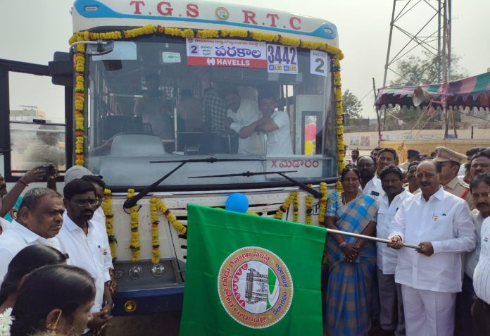 జెండా ఊపి బస్సును ప్రారంభించిన పరకాల ఎమ్మెల్యే రేవూరి