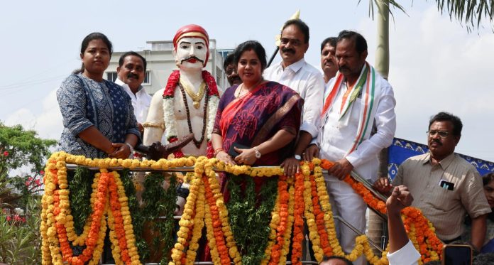 కాకతీయ, ఖమ్మం : సర్వాయి పాపన్న గౌడ్ ఆశయ సాధనకు ప్రతిఒక్కరూ కృషి చేయాలని స్థానిక సంస్థల అదనపు కలెక్టర్ డా పి శ్రీజ తెలిపారు. సామాజిక న్యాయం, సమానత్వం కోసం ఆయన చేసిన పోరాటం నేటి తరాలకు మార్గదర్శకమని పేర్కొన్నారు. ట్యాంక్ బండ్ వద్ద ఉన్న విగ్రహానికి పూలమాలలు వేసి నివాళులు అర్పించారు. డా పి శ్రీజ మాట్లాడుతూ అణగారిన వర్గాల అభ్యున్నతికి సర్వాయి పాపన్న చేసిన సేవలు ఆదర్శప్రాయమని అన్నారు. రాష్ట్ర గిడ్డంగుల సంస్థ చైర్మన్ రాయల నాగేశ్వరరావుతో కలిసి కార్యక్రమంలో పాల్గొన్నారు. ఈ కార్యక్రమంలో కత్తి నెహ్రూ గౌడ్, బచ్చు విజయ్ కుమార్, నూతి సత్యనారాయణ గౌడ్, పువ్వాళ్ళ దుర్గాప్రసాద్, అమరగాని వెంకన్న, వడ్డెబోయిన నరసింహ గౌడ్, మార్కం లింగయ్య గౌడ్, ఉడుగు శ్రీనివాస గౌడ్, డాక్టర్ శ్రీనివాస గౌడ్, డాక్టర్ రాజశేఖర్ గౌడ్, కోడి లింగయ్య, పగడాల నాగరాజు, షేక్ షకినా, అంబాల వెంకటేశ్వరరావు, తోడేటి దుర్గాప్రసాద్, పెరుగు వెంకటరమణ యాదవ్, జక్కుల వెంకటరమణ, బెల్లం కొండ శరత్, బండి నాగేశ్వరరావు, పెల్లూరి విజయ్ కుమార్, రమణ కుమార్, రవి కుమార్, కొప్పెల్లి శ్రీనివాస్, సమ్మయ్య, బడపట్ల సుదర్శన్, యాదాల నాగేశ్వరరావు, జ్యోత్స్న నాయక్, బత్తిని రాజు, మురళీ కృష్ణ, గంగరాజు, రామకృష్ణ, మాధవి, సతీష్, ముత్యాల రావు, వీరయ్య, మొగలయ్య, చందర్ రావు, రామకృష్ణ, బిసి కుల సంఘ నాయకులు, అధికారులు తదితరులు పాల్గొన్నారు.