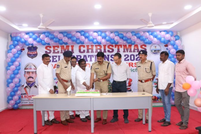 కాకతీయ, కొత్తగూడెం రూరల్ : జిల్లా పోలీస్ హెడ్క్వార్టర్స్ (హేమచంద్రపురం)లో సోమవారం సెమీ క్రిస్మస్ వేడుకలు ఘనంగా నిర్వహించారు. ఈ కార్యక్రమానికి జిల్లా ఎస్పీ రోహిత్ రాజు ముఖ్య అతిథిగా హాజరై పోలీస్ అధికారులు, సిబ్బందితో కలిసి వేడుకల్లో పాల్గొన్నారు. ఏఆర్ డీఎస్పీ సత్యనారాయణ ఆధ్వర్యంలో ప్రత్యేక ప్రార్థనలు నిర్వహించి, క్రిస్మస్ ఆత్మీయతను చాటారు. ఈ సందర్భంగా జిల్లా ఎస్పీ రోహిత్ రాజు మాట్లాడుతూ… క్రిస్మస్ అనేది ఏసుక్రీస్తు జననాన్ని స్మరించుకునే పవిత్రమైన పండుగ అని పేర్కొన్నారు. ప్రపంచవ్యాప్తంగా కోట్లాది మంది భక్తిశ్రద్ధలతో జరుపుకునే ఈ పండుగ ప్రేమ, క్షమ, మానవత్వ సందేశాన్ని ఇస్తుందని తెలిపారు. అన్ని మతాల ప్రజలు పరస్పర గౌరవంతో మతసామరస్యాన్ని కాపాడుతూ పండుగలను శాంతియుతంగా జరుపుకోవాలని పిలుపునిచ్చారు.