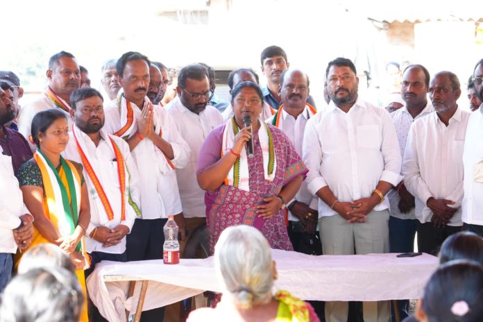 కాకతీయ, ములుగు ప్రతినిధి: మల్లంపల్లి మేజర్ గ్రామ పంచాయతీ కాంగ్రెస్ పార్టీ బలపరిచిన సర్పంచ్ అభ్యర్థి ల్యాద శ్యామ్రావు కు భారీ మెజారిటీతో విజయం సాధింపజేయాలని రాష్ట్ర పంచాయతీరాజ్, గ్రామీణాభివృద్ధి, మహిళ,శిశు సంక్షేమ శాఖ మంత్రి సీతక్క ప్రజలను కోరారు. బుధవారం ఆమె మల్లంపల్లిలో నిర్వహించిన ఎన్నికల ప్రచారంలో పాల్గొని ఇంటింటికి తిరిగి ఎన్నికల వాతావరణాన్ని మరింత ఉత్కంఠభరితంగా మార్చారు.ఈ సందర్భంగా మంత్రి సీతక్క మాట్లాడుతూ ఇచ్చిన మాట ప్రకారం మల్లంపల్లి మండలం ఏర్పాటు చేశాం అని, కొత్తగా ఏర్పడిన ఈ మండలానికి మాజీ జెడ్పీ చైర్మన్ కుసుమ జగదీష్ పేరును పెట్టడం పట్ల ఆనందంగా ఉంది అని, అభివృద్ధి పనులు, సంక్షేమ పథకాలు గ్రామాల్లో వేగంగా కొనసాగుతున్నాయి అని,గ్రామం మరింత అభివృద్ధి చెందాలంటే లేడీ పర్సు గుర్తుకు ఓటేసి శ్యామ్రావును గెలిపించాలి అని ఆమె అన్నారు. స్థానిక ప్రజలతో కలిసిమెలిసి ఉండే గుణం, అందరినీ అండగా తీసుకుని పనిచేసే స్వభావం శ్యామ్రావును ప్రత్యేకంగా నిలబెడుతుందని మంత్రి పేర్కొన్నారు. గ్రామాభివృద్ధి పథకాల అమలుకు ఆయన విజయం కీలకమని చెప్పారు. ప్రచారంలో బీసీ సెల్ జిల్లా అధ్యక్షుడు వంగ రవి యాదవ్, ఆత్మ కమిటీ చైర్మన్ కొండం రవీందర్ రెడ్డి, మాజీ సర్పంచ్ శ్రీకాంత్ రెడ్డి, గ్రామ కమిటీ అధ్యక్షుడు చందా రాము, డా. రవిబాబు, రామకృష్ణ రెడ్డి, చిట్టిరెడ్డి రాంరెడ్డి, ఎడ్ల కరుణాకర్ రెడ్డి, మూల గణేష్ రెడ్డి, మూల వెంకటేశ్వర్లు, నందికొండ శ్రీనివాస్ రెడ్డి, చెరుకుపల్లి మల్లారెడ్డి, మాచర్ల రవి, ముత్యాల వెంకన్న, అహ్మద్ పాషా, గొల్న మొగిలివనమ వేణు, తాళ్లపల్లి సాంబయ్య, కక్కెర్ల సాంబయ్య, గుడెపు రాజిరెడ్డి, జనగాం మల్లయ్య తదితరులు పాల్గొన్నారు.