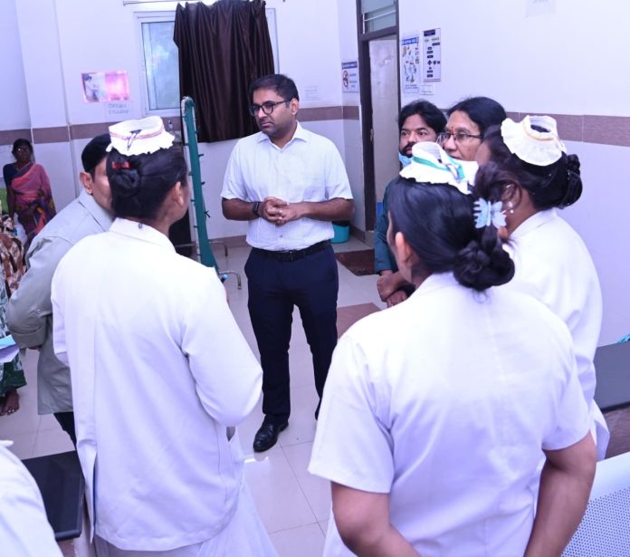 కాకతీయ, పెద్దపల్లి : జిల్లా ప్రభుత్వ ఆసుపత్రిలో అందిస్తున్న వైద్య సేవలను ప్రజలు సద్వినియోగం చేసుకోవాలని జిల్లా కలెక్టర్ కోయ శ్రీ హర్ష సూచించారు. బుధవారం పెద్దపల్లి పట్టణంలోని జిల్లా ఆసుపత్రిని ఆకస్మికంగా తనిఖీ చేసి పలు విభాగాల పనితీరును పరిశీలించారు.మాతా-శిశు సేవలు, రేడియాలజీ, గైనకాలజీ, లేబర్ రూమ్, ఆప్తామాలజీ, ఆర్థోపెడిక్స్, ఫార్మసీ విభాగాలను కలెక్టర్ పరిశీలించారు. గర్భిణీలకు ఈడీడీ క్యాలెండర్ ఆధారంగా ముందస్తుగా గుర్తించి, హెల్ప్‌డెస్క్ ద్వారా సంప్రదించి ప్రభుత్వ ఆసుపత్రుల్లోనే ప్రసవాలు జరిగేలా చర్యలు తీసుకోవాలని ఆదేశించారు.వైద్య సిబ్బంది సూపరింటెండెంట్ అనుమతి లేకుండా సెలవులకు వెళ్లరాదని స్పష్టం చేశారు. యూఎస్‌జీ, టిఫా స్కానింగ్, ఓపీ సేవలపై వివరాలు తెలుసుకుని అవసరమైన సూచనలు చేశారు. లేబర్ రూమ్‌లో శుభ్రత పాటించాలని సూచించారు. మాతా-శిశు వార్డుల్లో రోగులతో మాట్లాడి మందుల సరఫరా, నర్సింగ్ సిబ్బంది సేవలపై ఆరా తీశారు. రోగుల నుంచి వచ్చిన స్పందనపై సంతృప్తి వ్యక్తం చేశారు.ఆప్తామాలజీ విభాగంలో నూతనంగా ఏర్పాటు చేసిన ఫాకో పరికరం పనితీరును పరిశీలించి, ఈ సేవలను ప్రజలు వినియోగించుకోవాలని తెలిపారు. నెలకు 60–70 వరకు ఆర్థోపెడిక్ శస్త్రచికిత్సలు విజయవంతంగా జరుగుతున్నాయని పేర్కొన్నారు. ఫార్మసీ స్టాక్ నిర్వహణపై సంతృప్తి వ్యక్తం చేసిన కలెక్టర్, వేయిటింగ్ హాల్‌లో సీటింగ్ సామర్థ్యం పెంచాలని, రోగుల కోసం అదనపు సౌకర్యాలు కల్పించాలని ఆర్ఎంఓకు సూచించారు. ఈ తనిఖీలో ఆసుపత్రి సూపరింటెండెంట్ డాక్టర్ శ్రీధర్, ఆర్ఎంఓ డాక్టర్ విజయకుమార్, నర్సింగ్ సూపరింటెండెంట్ డాక్టర్ సాయి ప్రసాద్, వైద్య సిబ్బంది పాల్గొన్నారు.