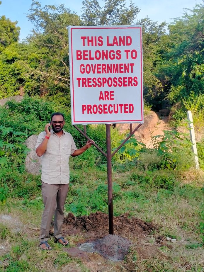 ప్రభుత్వ భూమిలో బోర్డు పాతిన అధికారులు..