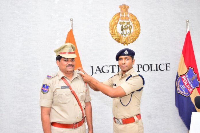 కాక‌తీయ, జ‌గిత్యాల: జగిత్యాల జిల్లా పోలీస్ కార్యాలయంలో జిల్లా క్రైమ్ రికార్డ్స్ బ్యూరో (డీసీ ఆర్ బీ) లో సబ్‎ఇన్‎స్పెక్టర్ గా పనిచేస్తున్న ద‌త్తాద్రి ‎ఇన్‎స్పెక్టర్ గా ప‌దోన్న‌తి పోందారు. జిల్లా పోలీస్ ప్ర‌ధాన కార్య‌ాలయంలో జిల్లా ఎస్పీ అశోక్ కూమార్ ని అయ‌న మ‌ర్యాద‌పూర్వ‌కంగా క‌లిసారు. ఈ సందర్భంగా పదోన్నతి పొందిన దత్తాద్రిని ఎస్పీ అభినందించి పదోన్నతి చిహ్నంగా మరొక స్టార్ ను అలంకరించి శుభాకాంక్షలు తెలిపారు.