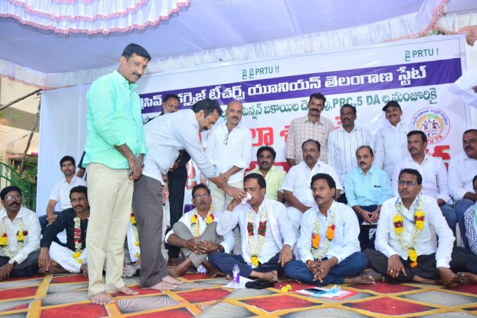 కాకతీయ,ఖమ్మం : ఉపాధ్యాయ, ఉద్యోగుల పెండింగ్ బిల్లులను రాష్ట్ర ప్రభుత్వం వెంటనే విడుదల చేయాలని పీఆర్టీయూ టీఎస్ ఎమ్మెల్సీ పింగిలి శ్రీపాల్ రెడ్డి డిమాండ్ చేశారు.జిల్లా అధ్యక్షులు కట్టా శేఖర్ రావు అధ్యక్షతన జరిగిన దీక్ష ముగింపు కార్యక్రమంలో ఎమ్మెల్సీ శ్రీపాల్ రెడ్డి మాట్లాడుతూ పీఆర్టీయూ టీఎస్ ఖమ్మం జిల్లాశాఖ చేపట్టిన 30 గంటల నిరాహార దీక్షను ఎమ్మెల్సీ శ్రీపాల్ రెడ్డి నిమ్మరసం ఇచ్చి విరమింపజేశారు.ఈ సందర్భంగా ఆయన మాట్లాడుతూ ఉపాధ్యాయ పెండింగ్ బిల్లులు, పెన్షనర్స్ బకాయిలు, పెండింగ్ డీఏలను విడుదల చేయాలని, పీఆర్సీని ప్రకటించాలని డిమాండ్ చేశారు. ముఖ్యమంత్రి రేవంత్ రెడ్డి నాయకత్వం లోని ప్రభుత్వం ఏర్పడి 2 సంవత్సరాలు అవుతున్న ప్పటికీ ఉద్యోగులు , ఉపాధ్యాయులకు ఎన్నికల ముందు మేనిఫెస్టో లో ఇచ్చిన హామీలను నెరవేర్చక పోవడం శోచనీయమని అన్నారు. ప్రభుత్వం ఇప్పటికైనా ఇచ్చిన హామీలను నెరవేర్చాలని డిమాండ్ చేశారు. ఉపాధ్యాయ పెండింగ్ బిల్లులు , పెన్షనర్స్ బకాయిలు , పెండింగ్ డీఏలు విడుదల,పీఆర్సి ఏర్పాటు , సీపీఎస్ రద్దు తదితర సమస్యల పరిష్కారానికై ముఖ్యమంత్రి రేవంత్ రెడ్డిని మంత్రి వర్గ ఉప సంఘం సభ్యులను కలిసి అనేక మార్లు ప్రాతినిధ్యం చేశామని అన్నారు. నెలకు 700 కోట్లు చెల్లిస్తామని చెప్పిన ప్రభుత్వం ఆ దిశగా నిధులు విడుదల చేయక పోవడంతో ఉద్యోగులు , ఉపాధ్యాయులు తీవ్ర నిరాశకు గురయ్యారని అన్నారు. దాని పర్యవసానమే ఖమ్మం జిల్లాశాఖ చేపట్టిన 30 గంటల నిరాహార దీక్షని పేర్కొన్నారు. దీక్ష విరమణ కార్యక్రమంలో పీఆర్టీయూ టీఎస్ రాష్ట్ర ఆడిట్ కమిటీ చైర్మన్ సోమిరెడ్డి శ్రీనివాస రెడ్డి , పీఆర్పీఏ రాష్ట్ర రాష్ట్ర అధ్యక్ష , ప్రధానకార్యదర్సులు మోతుకూరి మధు , కే వెంకట నర్సయ్య , ఖమ్మం జిల్లా ప్రధానకార్యదర్శి ఆర్ రంగారావు , అసోసియేట్ అధ్యక్షులు విజయ్ అమృత కుమార్ , బ్రహ్మా రెడ్డి , రాష్ట్ర బాద్యులు వెంకటేశ్వరరావు , రెబ్బా శ్రీనివాసరావు , మదార్ హుస్సేన్ , జిల్లా బాద్యులు రత్న కుమార్ , రవికుమార్ , వినోద్ కుమార్ , కిరణ్ కుమార్ , చాంద్ బేగo , కొత్తగూడెం , సూర్యాపేట జిల్లాల అధ్యక్ష , ప్రధాన కార్యదర్సులు పాల్గొన్నారు