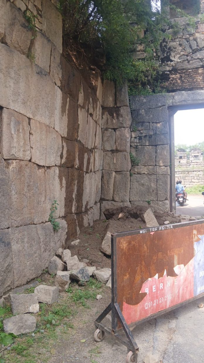 కాకతీయ, ఖిలావరంగల్ : ఖిలావరంగల్లోని పడమర కోట నుంచి మధ్యకోటకు వెళ్లే దారిలో బుధవారం రాత్రి కురిసిన భారీ వర్షానికి పెద్ద బండరాళ్లు కూలి రోడ్డుపై పడిపోయాయి. అదృష్టవశాత్తూ ఆ సమయంలో ఎవరూ ఆ మార్గంలో వెళ్లకపోవడంతో పెద్ద ప్రమాదం తప్పిందని స్థానికులు తెలిపారు. కోట గోడలు చాలా కాలంగా దెబ్బతిన్నా కూడా ఆర్కియాలజీ విభాగం ఎలాంటి మరమ్మతు పనులు చేపట్టలేదని విమర్శించారు. అధికారుల నిర్లక్ష్యంతో చారిత్రక కోట ధ్వంసమై, ప్రజలకు సైతం ప్రమాదకరంగా మారుతోందని తీవ్ర ఆగ్రహం వ్యక్తం చేస్తున్నారు. ఎప్పటికప్పుడు ముళ్ల చెట్లను తొలగించి పరిరక్షించాల్సిన అధికారులు, ప్రజాప్రతినిధులు పట్టించుకోకపోవడంతో కోట చుట్టుపక్కల ప్రాంతాల ప్రజలు భయాందోళనకు గురవుతున్నారని తెలిపారు. పురావస్తు అధికారులు వెంటనే చర్యలు తీసుకోవాలని స్థానికులు డిమాండ్ చేస్తున్నారు.