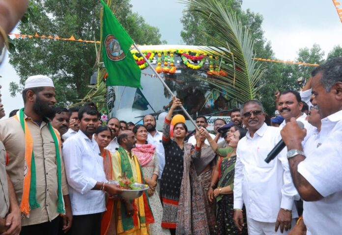 కాకతీయ, రాయపర్తి : మండలంలోని సూర్య తండ, ఏకే తండా గిరిజనులకు ప్రయాణం సులభతరం చేసేందుకు గాను నూతన బస్సు సేవలను ఎమ్మెల్యే మామిడాల యశస్విని రెడ్డి జెండా ఊపి ప్రారంభించారు. సోమవార టీపీసీసీ ఉపాధ్యక్షురాలు హనుమాండ్ల ఝాన్సీ రెడ్డితో కలిసి మండలంలో సుడిగాలి పర్యటన చేశారు. సూర్య తండా నుండి కొత్తూరు వరకు గిరిజనులతో కలిసి ఎమ్మెల్యే, ఝాన్సీ రెడ్డి నూతన బస్సులో ప్రయాణించారు.