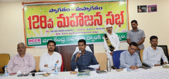 కాకతీయ, ఖమ్మం : రైతుల ఆదాయం పెంపును ప్రధాన లక్ష్యంగా పెట్టుకుని సహకార సంఘాలు సమర్థవంతంగా పనిచేయాలని జిల్లా కలెక్టర్ అనుదీప్ దురిశెట్టి సూచించారు. బుధవారం నిర్వహించిన జిల్లా కేంద్ర సహకార బ్యాంక్ 128వ మహాజన సభ సమావేశంలో పాల్గొన్న ఆయన, రైతులకు ఆర్థికంగా బలం చేకూర్చే చర్యలపై దిశానిర్దేశం చేశారు. సహకార సంఘాల ద్వారా అందించే రుణాలను సద్వినియోగం చేసుకుంటే రైతులు ఆర్థికంగా ముందుకు వెళ్లగలరని కలెక్టర్ పేర్కొన్నారు. సాగు యాంత్రీకరణకు రుణాల పంపిణీ పెంచాలని, తద్వారా ఉత్పాదకత పెరిగి రైతులకు లాభం చేకూరుతుందని తెలిపారు.