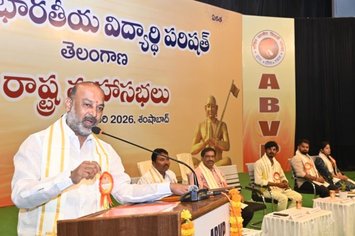 కాకతీయ, హైదరాబాద్ : బీఆర్ఎస్ పదేళ్ల పాలన, కాంగ్రెస్ రెండేళ్ల పాలన ఫలితంగా తెలంగాణలో ప్రభుత్వ విద్యా వ్యవస్థ పూర్తిగా చిన్నాభిన్నమైందని కేంద్ర హోంశాఖ సహాయ మంత్రి బండి సంజయ్ కుమార్ తీవ్ర ఆందోళన వ్యక్తం చేశారు. విద్య విఫలమైతే ఒక తరం నష్టపోతుందని, ప్రస్తుతం రాష్ట్రంలో అదే జరుగుతోందని ఆయన హెచ్చరించారు. శనివారం హైదరాబాద్ శంషాబాద్‌లోని ఎస్సాస్సార్ కన్వెన్షన్‌లో జరిగిన ఏబీవీపీ 44వ రాష్ట్ర మహాసభల్లో పాల్గొన్న బండి సంజయ్ మాట్లాడుతూ, బీఆర్ఎస్ పాలనలో 6 వేల ప్రభుత్వ పాఠశాలలు మూసివేస్తే, కాంగ్రెస్ అధికారంలోకి వచ్చాక వాటిని తెరవకపోగా ఒక్క ఏడాదిలోనే మరో 1500 స్కూల్స్ మూసివేశారని విమర్శించారు. ప్రతి విద్యార్థికి రూ.5 లక్షల భరోసా కార్డు ఇస్తామన్న హామీ గాలికొదిలేశారని ఎద్దేవా చేశారు. ఫీజు రీయంబర్స్‌మెంట్ బకాయిలు చెల్లించకపోవడంతో వందలాది కాలేజీలు మూతపడుతున్నా ప్రభుత్వం స్పందించడంలేదని ఆరోపించారు. గత నాలుగేళ్లుగా దాదాపు రూ.10 వేల కోట్ల ఫీజు రీయంబర్స్‌మెంట్ బకాయిలు పేరుకుపోయాయని తెలిపారు. ఈ విషయంలో విద్యార్థులను ఇబ్బంది పెడితే చూస్తూ ఊరుకోబోమని స్పష్టం చేశారు. విద్యా రంగ సమస్యలపై ఏబీవీపీ చేస్తున్న ఉద్యమాలను మరింత ఉధృతం చేయాలని పిలుపునిచ్చారు.
