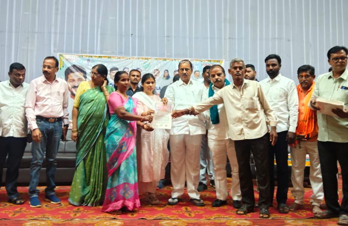 కాకతీయ,గీసుగొండ: టెక్స్టైల్ పార్క్ భూ నిర్వాసితులకు ప్రభుత్వం పూర్తిస్థాయిలో అండగా ఉంటుందని పరకాల ఎమ్మెల్యే రేవూరి ప్రకాశ్ రెడ్డి తెలిపారు. మండలంలోని కొనాయిమాకుల పీఎస్ఆర్ గార్డెన్స్లో ఏర్పాటు చేసిన కాకతీయ మెగా టెక్స్టైల్ పార్క్ భూనిర్వాసితులకు ఇంటి పట్టాల పంపిణీ కార్యక్రమానికి ఎమ్మెల్యే రేవూరి ప్రకాశ్ రెడ్డి, చైర్మన్ ఇనుగాల వెంకట్రామిరెడ్డి, జిల్లా కలెక్టర్ సత్య శారద కలిసి పాల్గొన్నారు.ఈ సందర్భంగా ఎమ్మెల్యే మాట్లాడుతూ భూ నిర్వాసితుల సంక్షేమాన్ని దృష్టిలో ఉంచుకుని 863 మంది లబ్ధిదారులకు ఇంటి రిజిస్ట్రేషన్ పట్టాలు అందజేయ నున్నట్లు తెలిపారు.భూ నిర్వాసితులకు గృహ వసతి కల్పించేందుకు రూ.43.15 కోట్ల వ్యయంతో ఇందిరమ్మ ఇండ్ల నిర్మాణం చేపడుతున్నామని పేర్కొన్నారు. అదనంగా సకల సౌకర్యాలతో రాజీవ్ గాంధీ టౌన్షిప్ నిర్మాణ పనులు కొనసాగుతు న్నాయని తెలిపారు.భూ నిర్వాసితుల అంగీకారం మేరకు ఒక్కో ఇంటిని రూ.5 లక్షల వ్యయంతో నిర్మించి పూర్తి చేసి అందజేయడం జరుగుతుందని వెల్లడించారు.