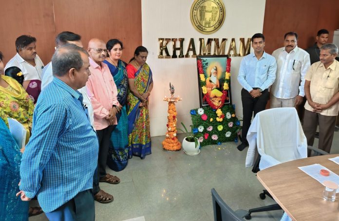 కాకతీయ, ఖమ్మం ప్రతినిధి: మహనీయుల జీవితాలను ఆదర్శంగా తీసుకొని వారి ఆశయాల సాధన దిశగా కృషి చేయాలని జిల్లా కలెక్టర్ అనుదీప్ దురిశెట్టి అన్నారు. ఆదికవి శ్రీ మహర్షి వాల్మీకి జయంతిని పురస్కరించుకొని మంగళవారం కలెక్టరేట్ లో ఏర్పాటు చేసిన కార్యక్రమంలో కలెక్టర్ పాల్గొని, మహర్షి వాల్మీకి చిత్రపటానికి పూలమాలలు వేసి, జ్యోతి ప్రజ్వలన చేసి నివాళులర్పించారు. ఈ సందర్భంగా ఆయన మాట్లాడుతూ మహాకవి వాల్మీకి ఆధ్యాత్మికవేత్తగా రామాయణం రచించి ఆదికవిగా వెలుగొందారని, రామాయణం ద్వారా అనేక విలువలను సమాజానికి అందించారని అన్నారు. అనంతరం వక్తలు మహర్షీ వాల్మీకి జీవిత విశేషాలను కొనియాడారు. కార్యక్రమంలో జిల్లా బీసీ అభివృద్ధి అధికారిణి జి.జ్యోతి, జిల్లా అధికారులు, కలెక్టరేట్ సూపరింటెండెంట్లు, కలెక్టరేట్ సిబ్బంది, బీసీ సంఘాల నాయకులు, తదితరులు పాల్గొన్నారు.