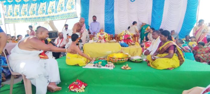 కాకతీయ, రాయపర్తి : మండల కేంద్రంతో పాటు ఆయా గ్రామాల్లో శ్రీరామనవమి వేడుకలు అత్యంత భక్తిశ్రద్ధలతో,కన్నుల పండువగా జరిగాయి.పండుగను పురస్కరించుకుని రామాలయాలన్ని పూలమాలలు,విద్యుత్ దీపాలతో సర్వాంగ సుందరంగా ముస్తాబు చేశారు.శుక్రవారం మధ్యాహ్నం వేద పండితుల మంత్రోచ్ఛారణలు,మంగళ వాయిద్యాల నడుమ శ్రీ సీతారామచంద్ర స్వామి వారి కల్యాణ మహోత్సవాన్ని అత్యంత వైభవంగా నిర్వహించారు.ఈ అద్భుత ఘట్టాన్ని పురస్కరించుకుని రాయపర్తి గ్రామ సర్పంచ్ గారె సహేంద్ర బిక్షపతి స్వామివారికి పట్టు వస్త్రాలు సమర్పించారు.ఈ నేపథ్యంలో సర్పంచ్ దంపతులకు ఆలయ ప్రధాన అర్చకులు ఆరుట్ల రంగాచార్యులు,యగ్యాచార్య ఆరుట్ల శ్రీనివాసాచార్య,శ్రీరామాచార్య పూర్ణకుంభంతో స్వాగతం పలికారు.అనంతరం వారు స్వామివారికి పట్టు వస్త్రాలు,ముత్యాల తలంబ్రాలు అందజేశారు.ఈ సందర్భంగా సర్పంచ్ మాట్లాడుతూ…గ్రామ ప్రజలంతా పాడిపంటలతో,ఆయురారోగ్యాలతో సుభిక్షంగా ఉండాలని,సీతారాముల ఆశీస్సులు అందరిపైనా ఉండాలని ప్రార్థించినట్లు తెలిపారు.