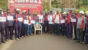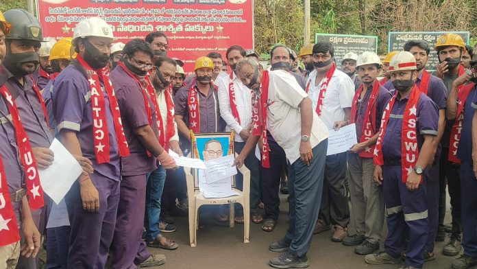 ఏఐటియుసి ఆధ్వర్యంలో పివికే5 గనిలో నల్ల రిబ్బన్లతో వినూత్న నిరసన