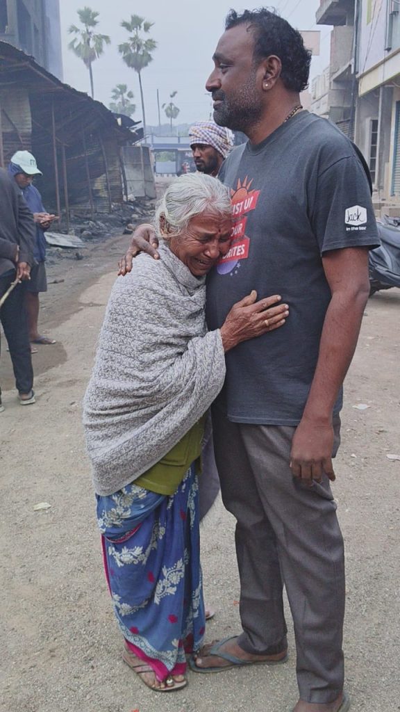 నిద్రపోయి ఉన్నాము. మంటల వేడి తగులుతుండడంతో లేచి బయటకి పరిగులు తీశాం. అప్పటికే మంటలు భారీగా వ్యాపించాయి. ఫైర్ ఇంజిన్‌కు ఫోన్ చేస్తే 2 గంటల తరువాత వచ్చింది. కట్టు బట్టలతో మిగిలిపోయాము. మాకు ఇప్పుడు ఏం చేయాలో ఏమి తెలియడం లేదు.