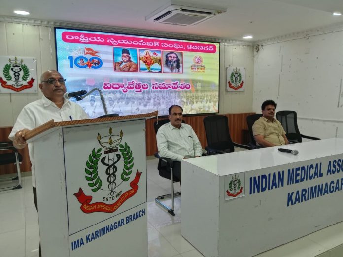 శతాబ్ది సందర్భంగా సమాజ పరివర్తన ద్వారా దేశ పరమవైభవం సాధ్యమని లక్ష్యంగా ‘పంచ పరివర్తన్’ పిలుపును ఆర్ఎస్ఎస్ ఇచ్చిందన్నారు. కుటుంబ ప్రబోధన్, స్వదేశీ భావన, సామాజిక పరివర్తన, పర్యావరణ పరిరక్షణ, పౌర బాధ్యతలపై ప్రజల్లో అవగాహన కల్పించే కార్యక్రమాలను స్వయంసేవకులు విస్తృతంగా చేపడుతున్నారని తెలిపారు. 1925లో విజయదశమి రోజున డాక్టర్ కేశవ్ రావు బలి రామ్ పంత్ హెడ్డగేవార్ ప్రారంభించిన ఆర్ఎస్ఎస్, వందేళ్లుగా స్వచ్ఛందంగా సమాజ సేవ చేస్తోందన్నారు. హిందుత్వాన్ని మత లేదా రాజకీయ కోణంలో మాత్రమే చూడటం ద్వారా ఆర్ఎస్ఎస్ను అర్థం చేసుకోవడం సాధ్యం కాదని, సంఘాన్ని అర్థం చేసుకోవాలంటే కొంతకాలం కార్యకలాపాల్లో భాగస్వాములవ్వాలని సర్ సంఘచాలక్ మోహన్ భగవత్ చేసిన వ్యాఖ్యలను ఈ సందర్భంగా ఆయన గుర్తు చేశారు. సమావేశంలో ఆర్ఎస్ఎస్ విభాగ్ సంఘచాలక్ డాక్టర్ చక్రవర్తుల రమణాచారి, కరీంనగర్ జిల్లా సంఘచాలక్ సీఏ నిరంజనాచారి, జిల్లా సహ సంఘచాలక్ ఎలగందుల సత్యనారాయణతో పాటు పలువురు విద్యావేత్తలు పాల్గొన్నారు.