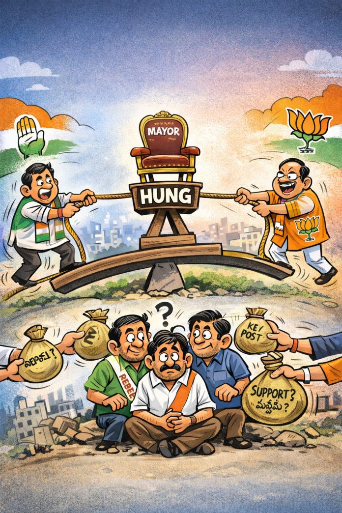 కాంగ్రెస్, బీజేపీ నెక్ టు నెక్… మేయర్ పీఠంపై ఉత్కంఠ