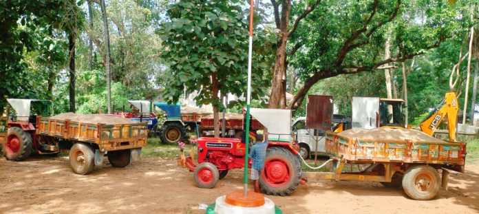 కాకతీయ, నూగూరు వెంకటాపురం: మండల పరిధిలో గల చొక్కాల గోదావరి పరిసర ప్రాంతాల్లో నుండి సోమవారం జెసిబి సహాయంతో ట్రాక్టర్లలో ఇసుకను అక్రమ రవాణా చేస్తున్నారు. ఈ విషయం తెలుసుకున్న రెవెన్యూ అధికారులు చాకచక్యంగా వాటిని పట్టుకుని తహసిల్దార్ కార్యాలయానికి తరలించారు. ఈ విషయంపై డిప్యూటీ తహసిల్దార్ మహేందర్ ను వివరాలు కోరగా ఒక జెసిబి, ఆరు ట్రాక్టర్లను సీజ్ చేశామని తెలిపారు. ఇసుక రవాణా కంకల వాగు బ్రిడ్జి నిర్మాణ పనులకు తరలిస్తున్నారని, ఎటువంటి అనుమతులు లేవని తెలిపారు. వాటిపై కేసు నమోదు చేసి జరిమానా విధిస్తామని చెప్పారు.