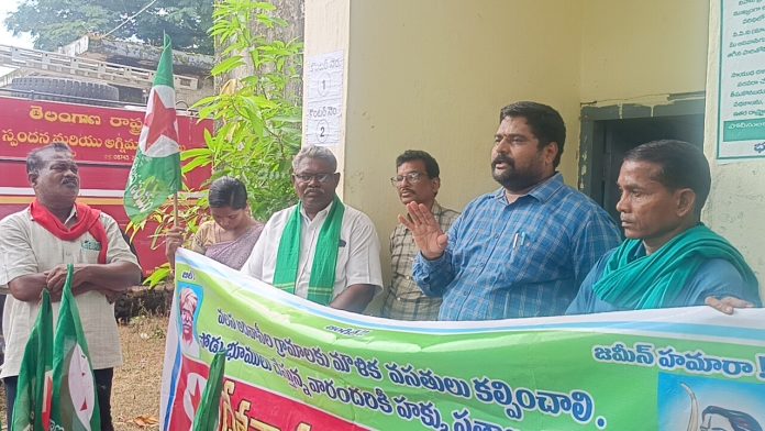 కాకతీయ, పినపాక: మండల కేంద్రంలోని ఎంపీడీవో కార్యాలయం ఎదుట సిపిఎం, తెలంగాణ ఆదివాసీ గిరిజన సంఘం ఆధ్వర్యంలో గిరిజనులు నిరసన తెలిపారు. సుందరయ్య నగర్ గ్రామస్తులు తమ గ్రామ రహదారిపై హామీ ఇచ్చేవరకు ఇక్కడ నుంచి కదిలేది లేదని కార్యాలయం ముందు బైఠాయించారు. ఈ సందర్భంగా సిపిఎం జిల్లా కమిటీ సభ్యులు నిమ్మల వెంకన్న మాట్లాడుతూ సుందరయ్య నగర్ గ్రామంలో రహదారి నిర్మిస్తామని హామీలు ఇవ్వడమే తప్ప ప్రభుత్వంగాని, ప్రజాప్రతినిధులుగాని, అధికారులు గాని ఆ హామీలను అమలు చేయడం లేదని ఆరోపించారు. ఆదివాసి గిరిజన సంఘం జిల్లా కమిటీ సభ్యుడు మడివి రమేష్ మాట్లాడుతూ అనారోగ్యం పాలైతే సుందరయ్య నగర్ గ్రామంలో ఇంకా డోలీలు కట్టాల్సి వస్తుందని, ఇంకెంతకాలం తమకు ఈ డోలిమోతలు అని ప్రశ్నించారు.