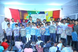 విద్యార్థుల కు నోట్ బుక్స్, బ్యాగులు పంపిణీ