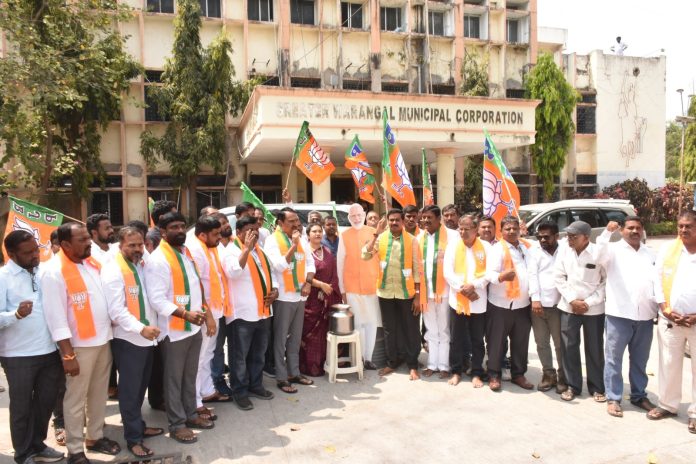 కాకతీయ, వరంగల్ సిటీ : బీజేపీతోనే నగరాభివృద్ధి సాధ్యమని, వరంగల్ అభివృద్ధిపై కేంద్రం ప్రత్యేక దృష్టి పెట్టిందని బీజేపీ వరంగల్ జిల్లా అధ్యక్షుడు గంట రవికుమార్ హర్షం వ్యక్తం చేశారు. గ్రేటర్ వరంగల్లో అండర్ గ్రౌండ్ డ్రైనేజ్కి నిధులు కేటాయించడంపై హర్షం వ్యక్తం చేస్తూ సోమవారం గ్రేటర్ మున్సిపల్ కార్యాలయం వద్ద ప్రధాని మోడీ చిత్రపటానికి క్షీరాభిషేకం నిర్వహించారు. అనంతరం గంట రవికుమార్ మాట్లాడుతూ… గ్రేటర్ వరంగల్ అభివృద్ధికి ప్రధాని నరేంద్ర మోదీ భారీగా నిధులు కేటాయిస్తున్నారని, ఈ పథకం కింద 5257.20 కోట్లతో చేపట్టే పనులకు పాలనపరమైన అనుమతి మంజూరు చేస్తూ మున్సిపల్ అడ్మినిస్ట్రేషన్ శాఖ ఉత్తర్వులు జారీ చేయడం హర్షణీయమన్నారు. కేంద్రం భారీగా నిధులు ఇస్తున్న ఖర్చు చేయడంలో పాలకులు పూర్తిగా విఫలం అవుతున్నారని పేర్కొన్నారు. గ్రేటర్ వరంగల్ అభివృద్ధిపై కేంద్ర ప్రభుత్వం ప్రత్యేక దృష్టి సారించిందని గంట రవికుమార్ అన్నారు. ఇప్పటికే ఎయిర్ పోర్ట్ మంజూరు చేసిన కేంద్రం, తాజాగా అండర్ డ్రైనేజీకి నిధులు మంజూరు చేసిందని, ఇప్పటికే స్మార్ట్ సిటీ లో భాగంగా అనేక నిధులు ఇచ్చి నగరం రూపురేఖలు మార్చిందని అన్నారు. కాంగ్రెస్ రెండేళ్ల పాలనలో హామీలు తప్ప అభివృద్ధి చేసింది లేదని విమర్శించారు. ఓట్ల కోసం ఇచ్చే హామీలు తప్ప ప్రజల బాగోగులు పట్టించుకున్న దాఖలు లేవని దుయ్యబట్టారు.