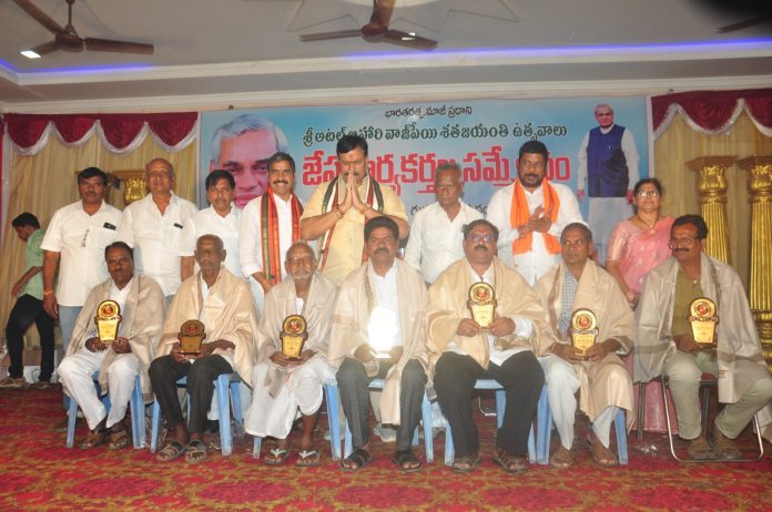 కాకతీయ, ఖమ్మం : మాజీ ప్రధాని, భారతరత్న దివంగత నేత అటల్ బిహారీ వాజ్పేయి జీవితం తరతరాలకు ఆదర్శంగా నిలిచిందని బీజేపీ జాతీయ కార్యవర్గ సభ్యుడు, తమిళనాడు–కర్ణాటక రాష్ట్రాల ఇన్చార్జి పొంగులేటి సుధాకర్ రెడ్డి అన్నారు. అటల్ బిహారీ వాజ్పేయి శతజయంతి ఉత్సవాల సందర్భంగా ఖమ్మంలో జ్యేష్ఠ కార్యకర్తలను ఘనంగా సన్మానించారు. ఖమ్మం జిల్లా బీజేపీ కమిటీ అధ్యక్షుడు దుద్దుకూరి వెంకటేశ్వరరావు, ప్రధాన కార్యదర్శి మందడపు ప్రభాకర్ రెడ్డి ఆధ్వర్యంలో స్థానిక ఐఎంఏ హాలులో నిర్వహించిన కార్యక్రమంలో ఉమ్మడి ఖమ్మం జిల్లాకు చెందిన 107 మంది జ్యేష్ఠ కార్యకర్తలను గుర్తించి శాలువాలు, మెమెంటోలు అందజేశారు.